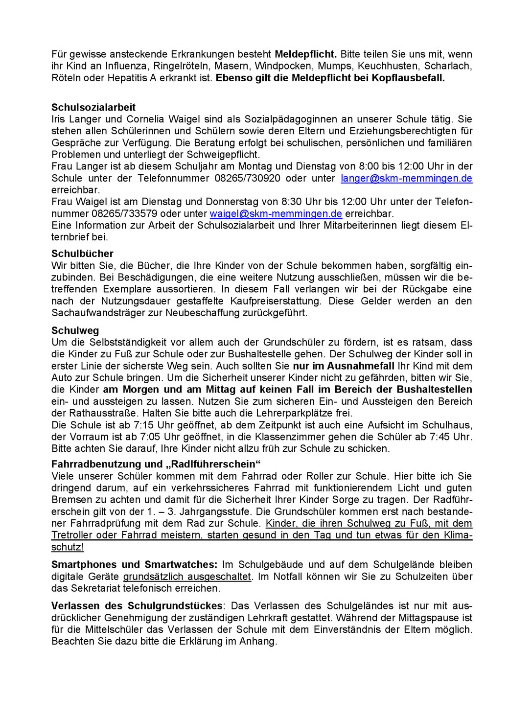 Elternbrief Sozialarbeit